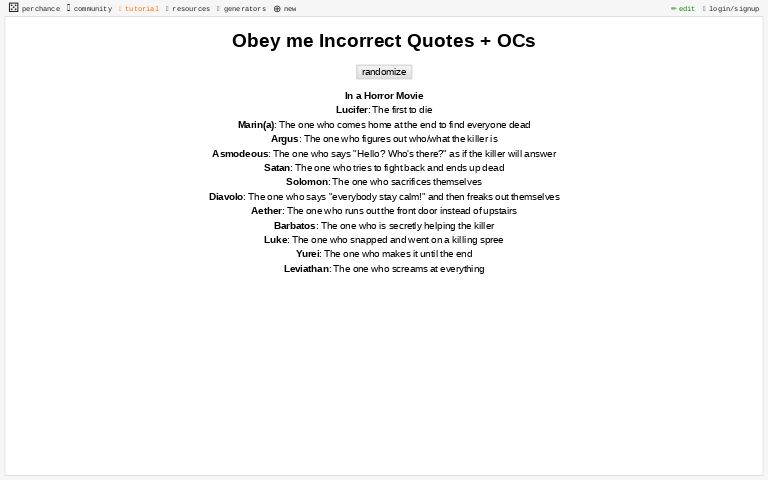 Obey Me Incorrect Quotes Ocs Perchance Generator